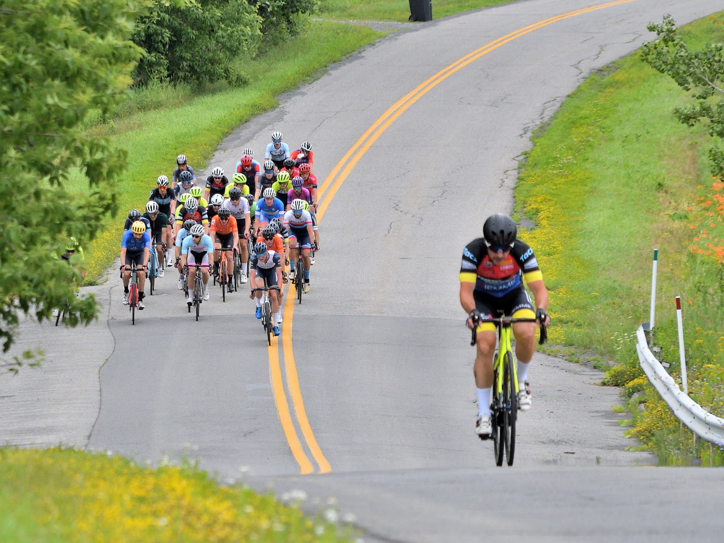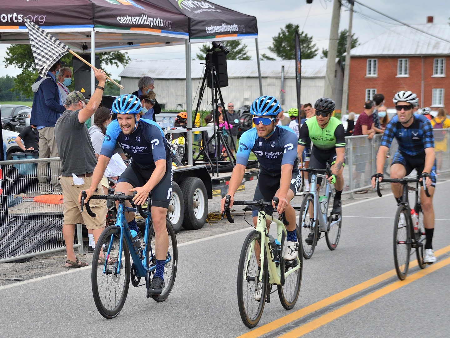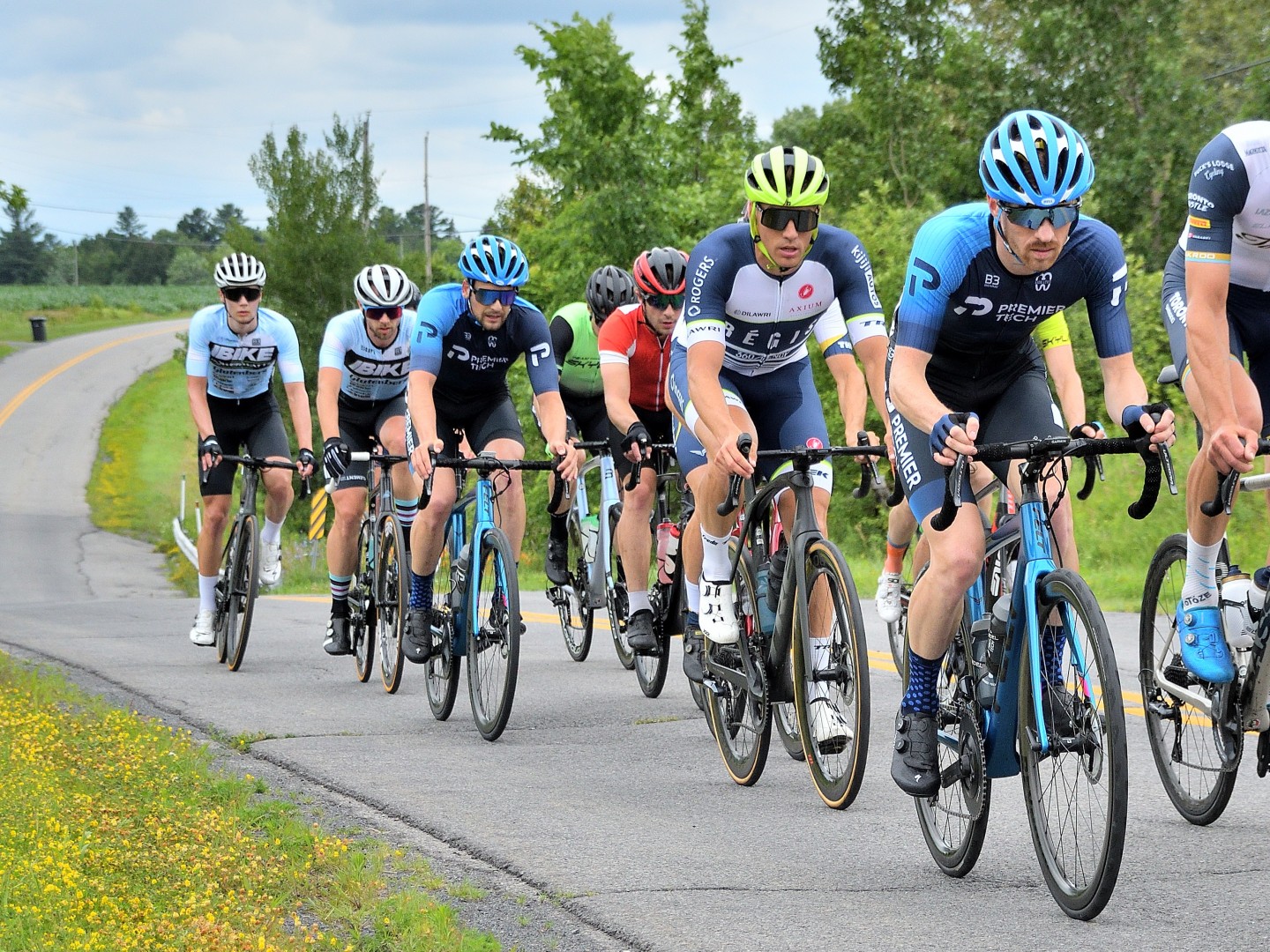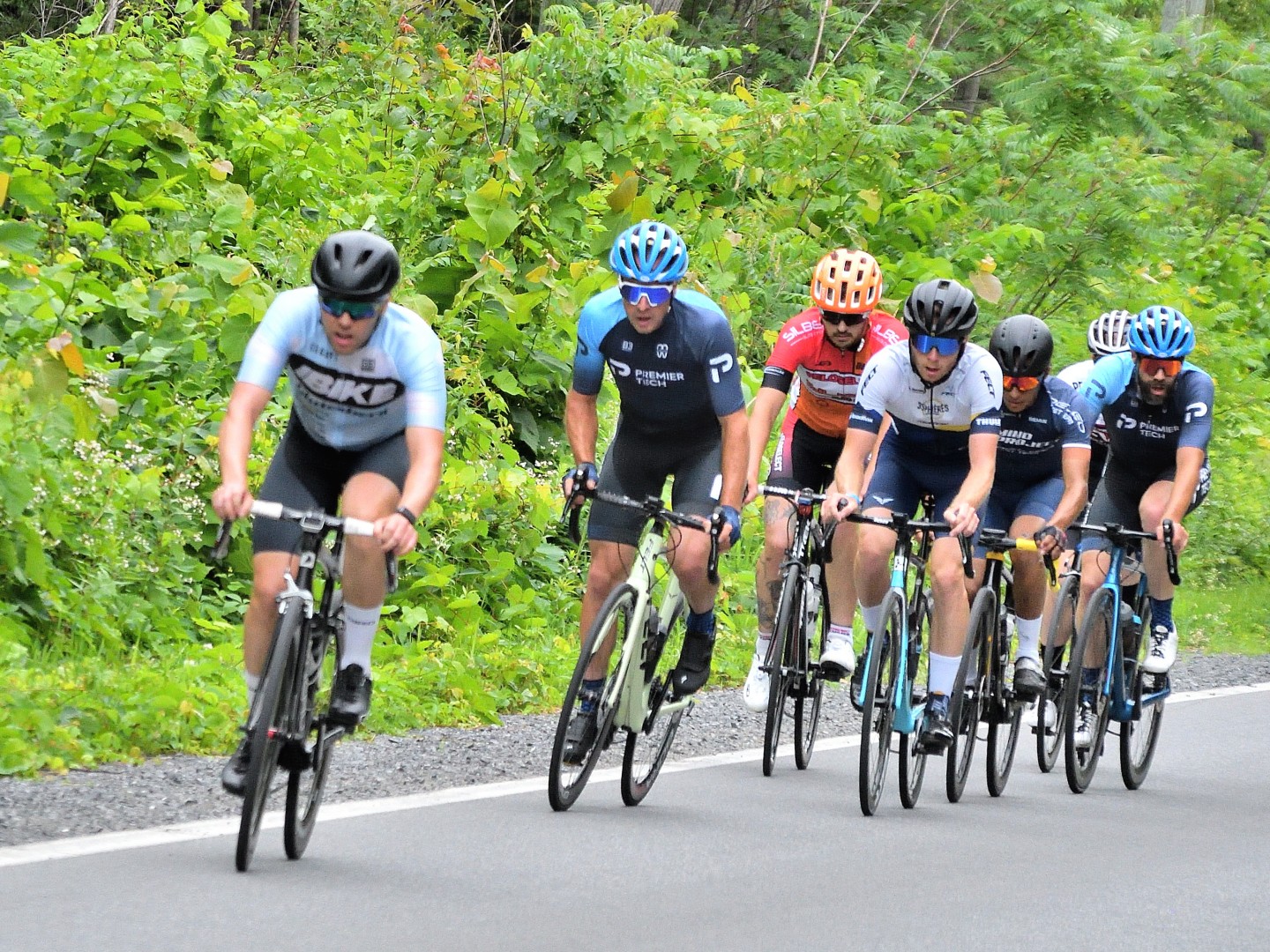 De gros noms étaient sur la ligne de départ, dont plusieurs coureurs de l’équipe professionnelle américaine Rally Cycling. Pour les amateurs de chiffre, la première ascension du mont Rigaud s’est montée autour de 645w durant un peu plus de 3 minutes. Deux (Maximilien et Mathieu) de nos guerriers ont réussi à s’accrocher au rouleau compresseur Rally. Au 3e tour, Mathieu dut rendre les armes devant tous ces puissants combattants pour laisser Maximilien seul dans le groupe de tête.