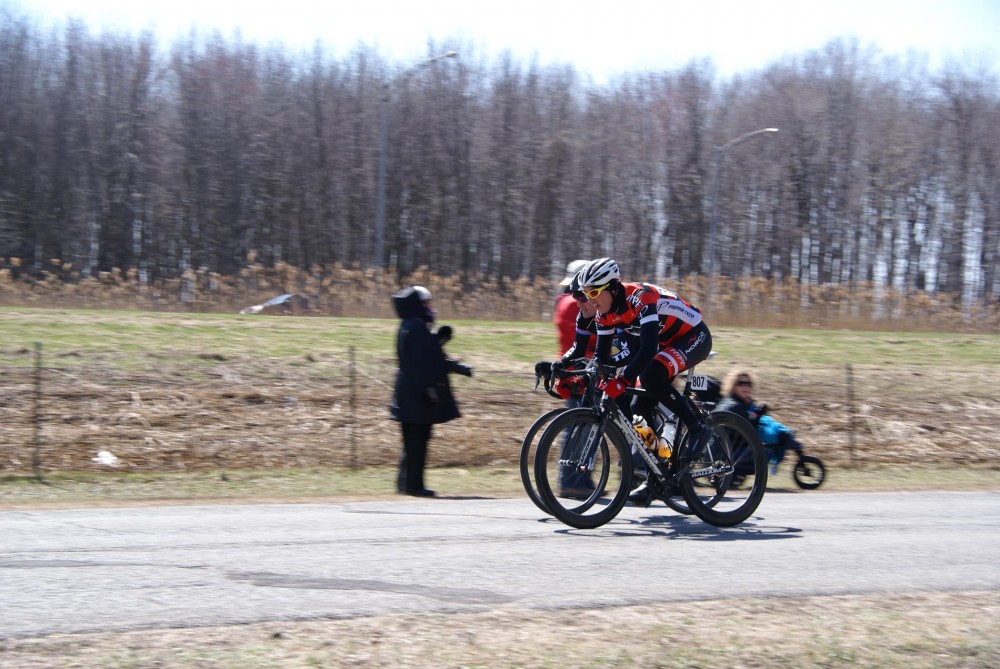 Malgré le temps froid, l’équipe des Maîtres était bien représentée avec Martin Cléroult, Martin Gosselin, Yanik Picard, Alexandre Aubiès et Sébastien Perreault dans le peloton Maître A et Didier Chunlaud dans le peloton Maître C. Les Maîtres A avaient 7 tours à faire, pour un total de 94 km.