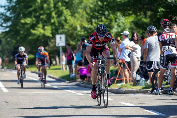 Après une belle attaque de Samuel au 2e tour, Sébastien a pu rejoindre, en compagnie d’un autre coureur, une échappée formée lors du 3e tour. Les Maîtres A et B courant ensemble, cette dernière était formée de 3 coureurs Maître B et 2 coureurs Maître A. Au terme de la course des B, Sébastien et son compagnon, avec 50 secondes d’avance, ont dû travailler d’arrache pied afin de résister au retour du peloton. C’est finalement au sprint que Sébastien a su l’emporter face à ses adversaires. Patrick et Samuel ont pu rallier l’arrivée au sein du peloton.