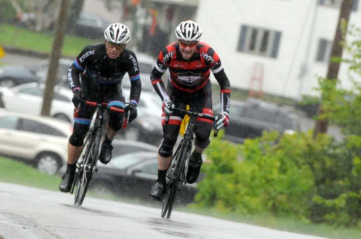 Les Maîtres de l’équipe Norco Bicycles/PremierTech ont participé au GP de St-Raymond. La température de 5°C, la pluie et le vent n’ont pas découragé ces vieux briscards.