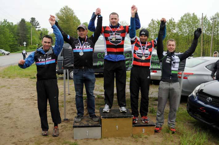 Dans la catégorie des Maîtres A, Alexandre Aubiès, Martin Gosselin, Sébastien Perreault, Sébastien Gadbois, Patrick Fournier et Yohann Deshaies ont pris le départ. Après de nombreuses escarmouches bien suivies par nos Maîtres, c’est Martin qui s’est échappé en compagnie d’un autre coureur. Les coureurs de Norco Bicycles/PremierTech ont alors contrôlé le peloton. Au final, Martin s’impose alors qu’Alexandre gagne le sprint pour la 3e place au sein d’un peloton qui a perdu bon nombre d’éléments étant donné les conditions climatiques.