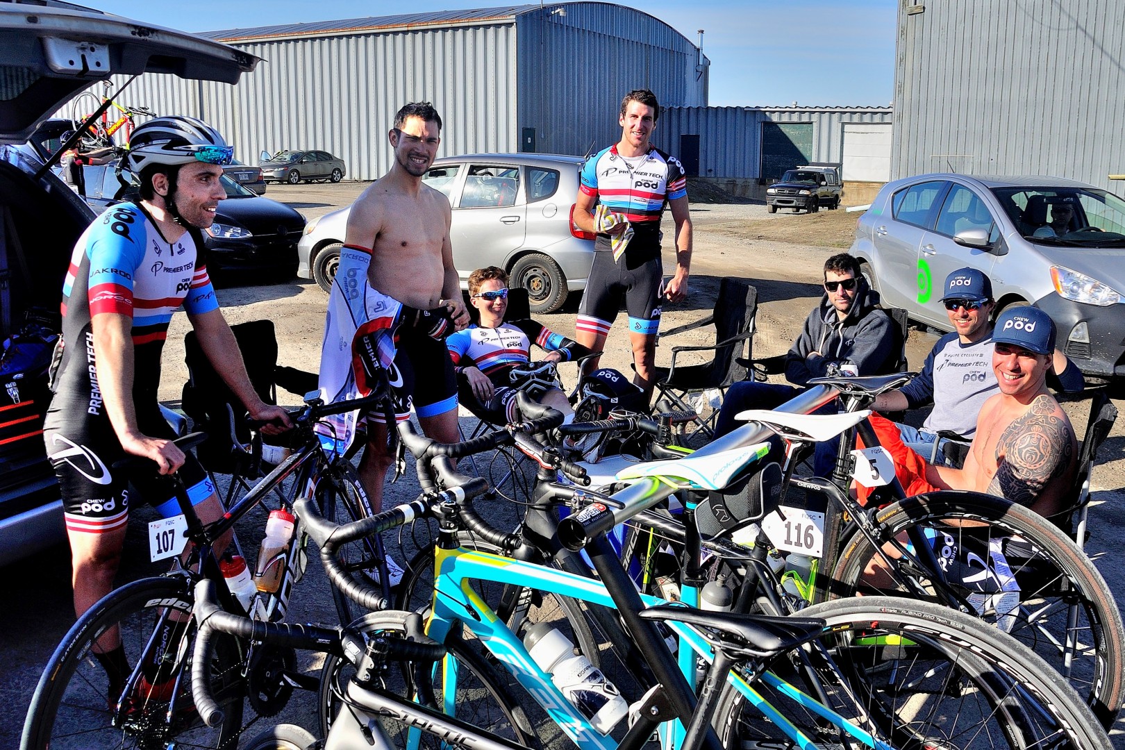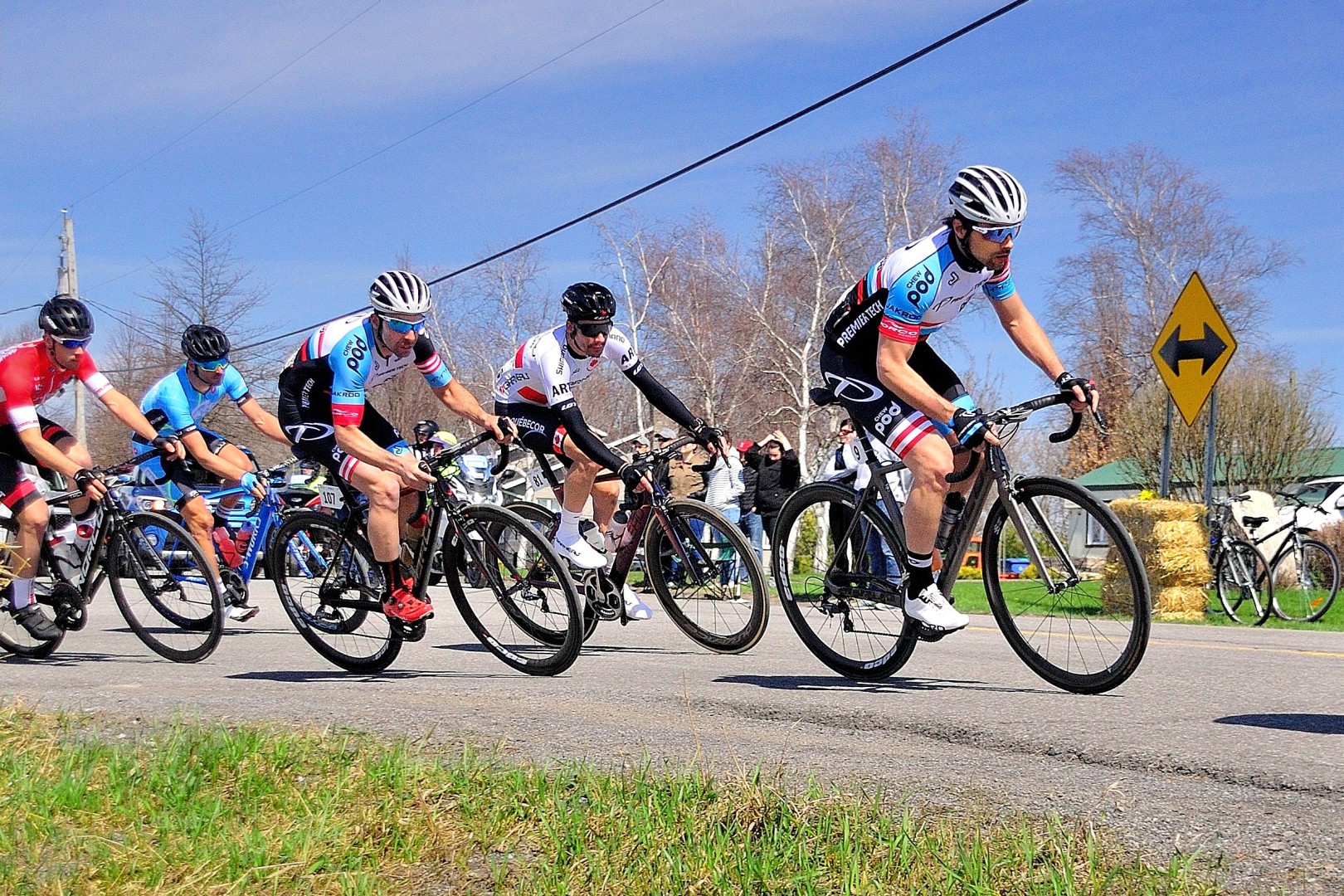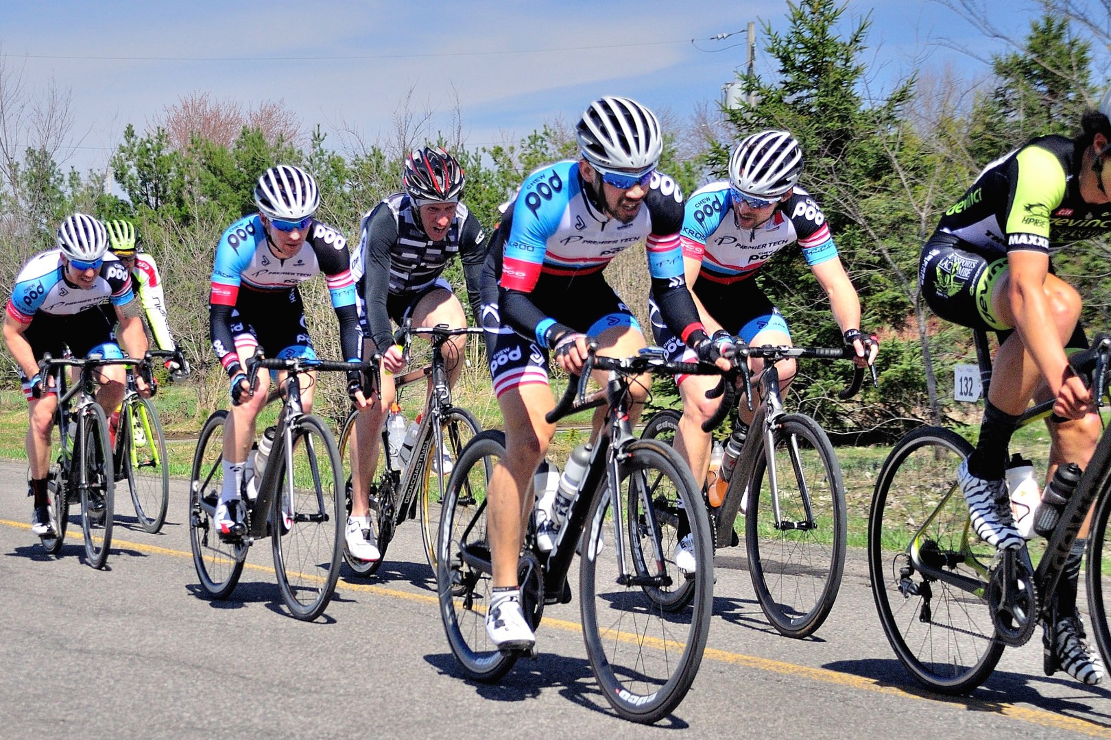 La sélection s’est ainsi fait peu à peu.  Chez Premier Tech p/b ChewPod, 3 membres étaient encore des 20 coureurs ayant survécu aux rythme de cette course endiablé, quand à 20 km de la fin, une chute est survenu. Guillaume Fiset a chuté durement sur la tête, en tombant du haut de ses 6 pieds 2 pouces!  Sébastien Rousseau a pu éviter le pire en traversant le terrain fraîchement tondu de la résidence voisine. Il a ainsi pu revenir en solitaire sur son coéquipier Jules Cusson-Fradet et 12 les gars du groupe de chasse.