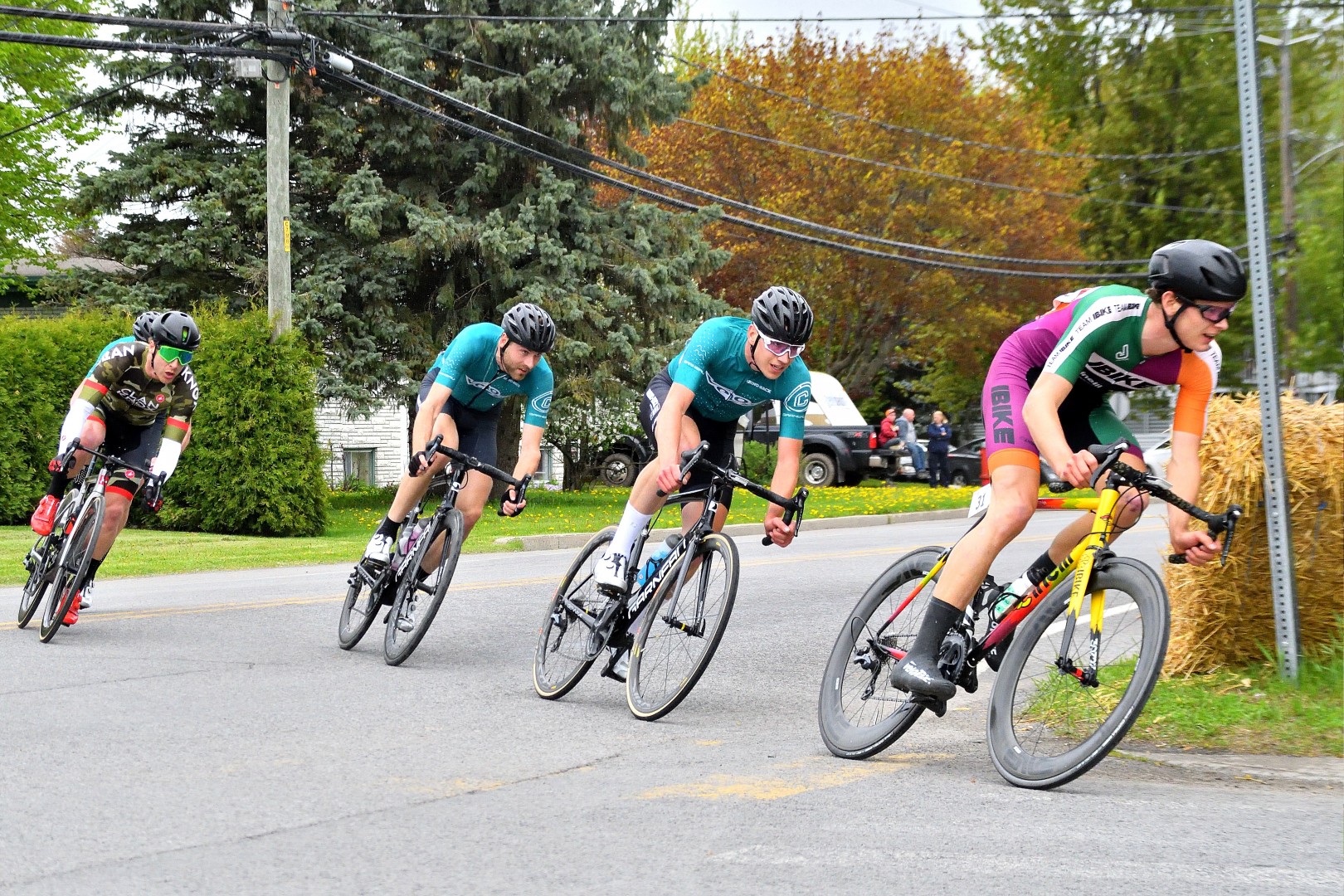 Le focus passe donc à tenter d’arracher les dernières places d’honneur. Cependant, malgré de fortes accélérations de chacun de nos coureurs, le peloton refuse de céder. Pendant ce temps, l’écart avec les 5 hommes de tête monte à tout près d’une minute… Ils finiront avec 40 secondes d’avance. Bravo à Philippe Mireault pour ça belle victoire au sprint!