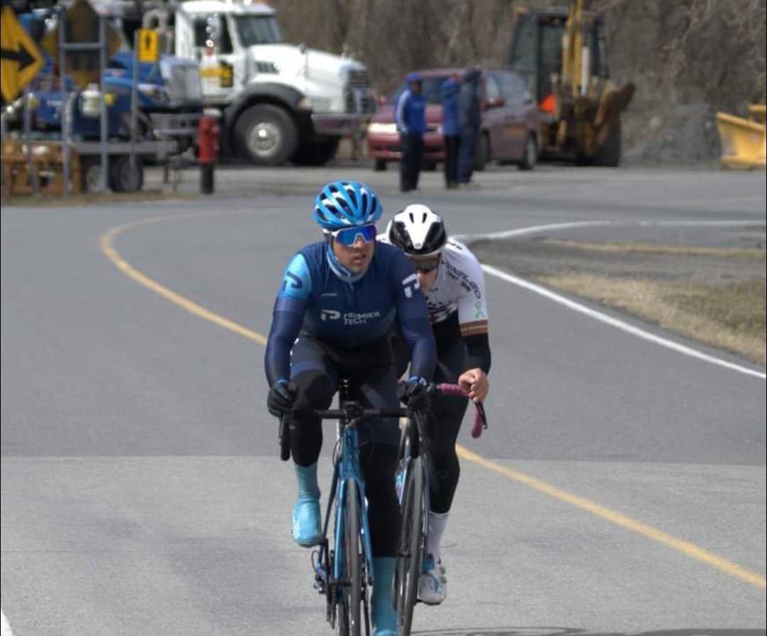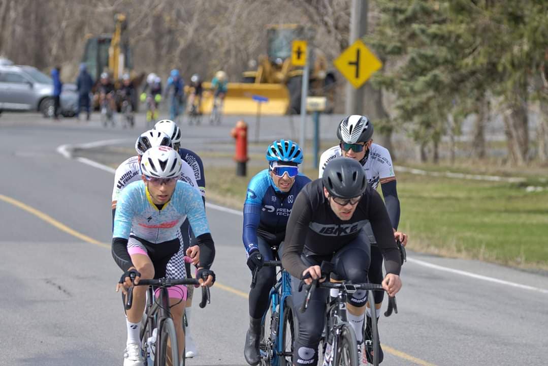 Bien que la journée ait été froide et venteuse, nos 3 amigos ont été épargnés par la pluie et ont pu savourer leurs 125 km. À peine la course lancée, Francis et Sébastien ont pris part à l’échappée du jour. À un certain moment, ils étaient confortablement installés avec 2 minutes en poche. En raison de la vitesse, mais aussi d’inattention, les 2 fuyards de Premier Tech X Endo Lévis ont perdu le groupe de tête, mais se sont rapidement installés avec le groupe de chasse qui suivait.