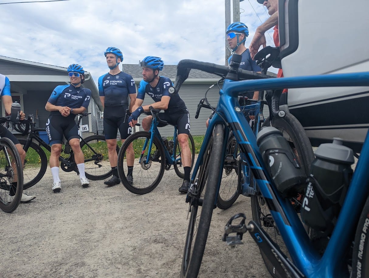 Guillaume Fiset et Sébastien Rousseau ont toutefois pu se hisser dans le groupe de tête pendant que leur coéquipier avait soit trop bouché des trous derrière ou déjà connu des crevaisons. Après 30 kilomètres, l’équipe était en excellente posture pour espérer un podium, mais coup de théâtre… crevaison de Rousseau. Finalement Julien de La Sablonnière est arrivé peu après et a insisté pour lui céder sa roue! Porté par le patriotisme du geste Rousseau a roulé la rage au cœur pour rendre hommage au sacrifice. Il a finalement rejoint Guillaume Fiset, qui lui connaissait une rare journée plus difficile. Les deux amis se sont soutenus, et même malgré une chute de Fiset, le colosse guerrier, il s’est relevé pour continuer l’effort et rallier le fil en véritable frère d’armes!