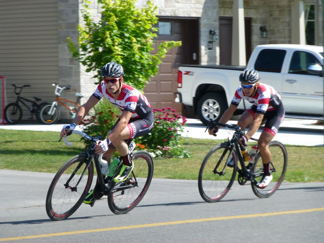 Ce dimanche avait lieu la grande finale du Tour de la Montérégie. Un critérium «boule de neige» au cœur de Mercier. 70 tours d’un circuit de 850m avec un nombre de points croissant à l’enjeu à chaque passage de la ligne. 1 point au premier tour, 2 points au deuxième… 50 points au cinquantième, ainsi de suite ! Avec le mercure au dessus des 30 degrés Celsius, cela ne s’annonçait pas pour être du gâteau !