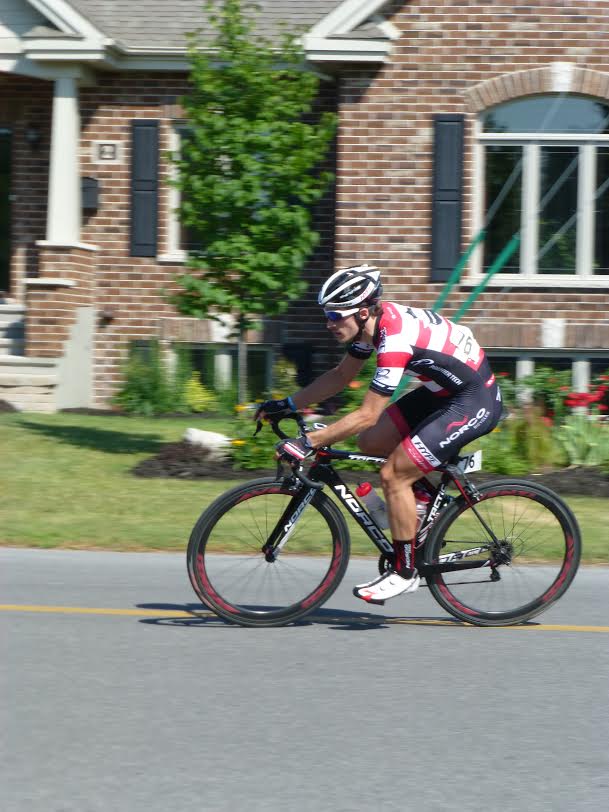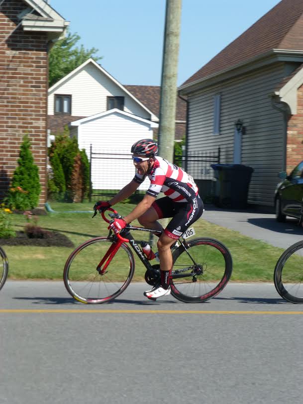 The Tour de la Montérégie Finale was held on sunday. The race was a 70 laps « snowball » criterium over a course of 850m held in the heart of Mercier. The « snowball » criterium meant that every lap had a sprint for points. Lap one had 1 point, lap 2 had 2 points, lap 50 had 50 points and so on. With the temperature rising over 30 celsius, it wasn’t to be a walk in the park!