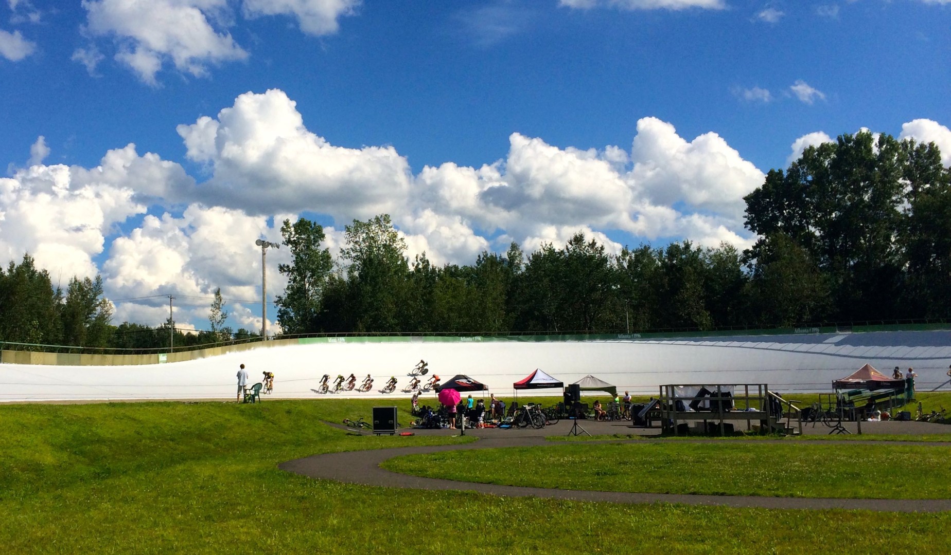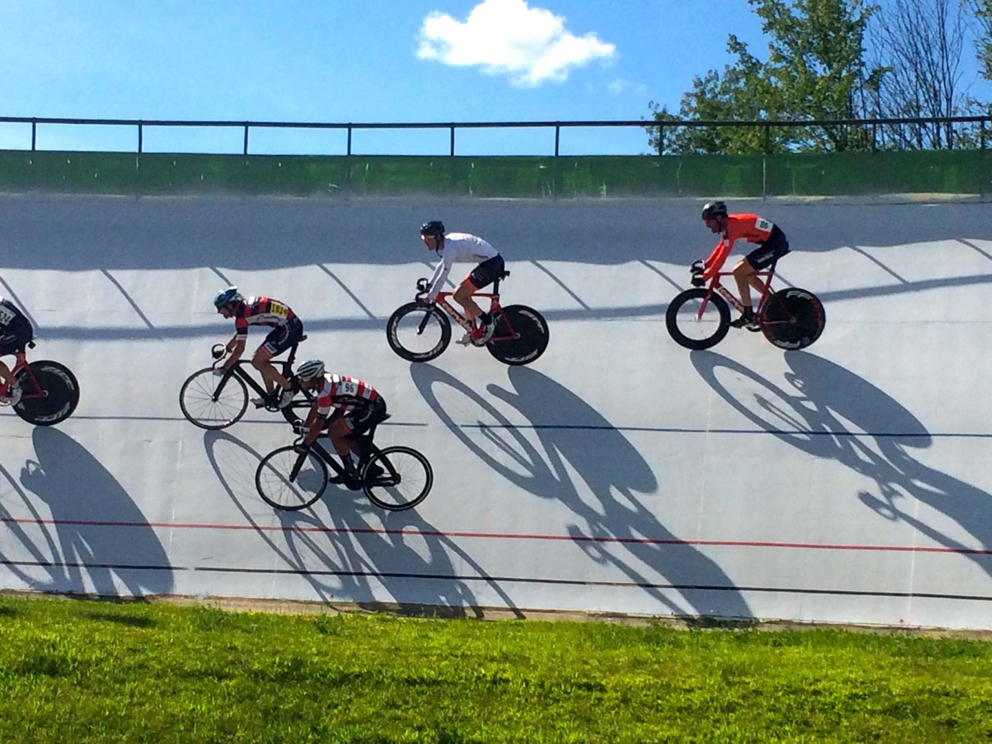 Lors de la première journée de cette compétition se déroulant sous forme d’omnium, des nuages sombres et une ambiance de pluie menaçaient. Finalement, après un peu de retard, la journée a commencé sous un fort vent avec le 200 mètres lancé. Les trois membres de l’équipe se mesuraient à l’élite québécoise, dont Rémi Pelletier-Roy qui revenait tout juste des jeux panaméricains. Les gars se sont bien débrouillés : 12e (Fabien), 13e (Simon) et 14e places (L-C).