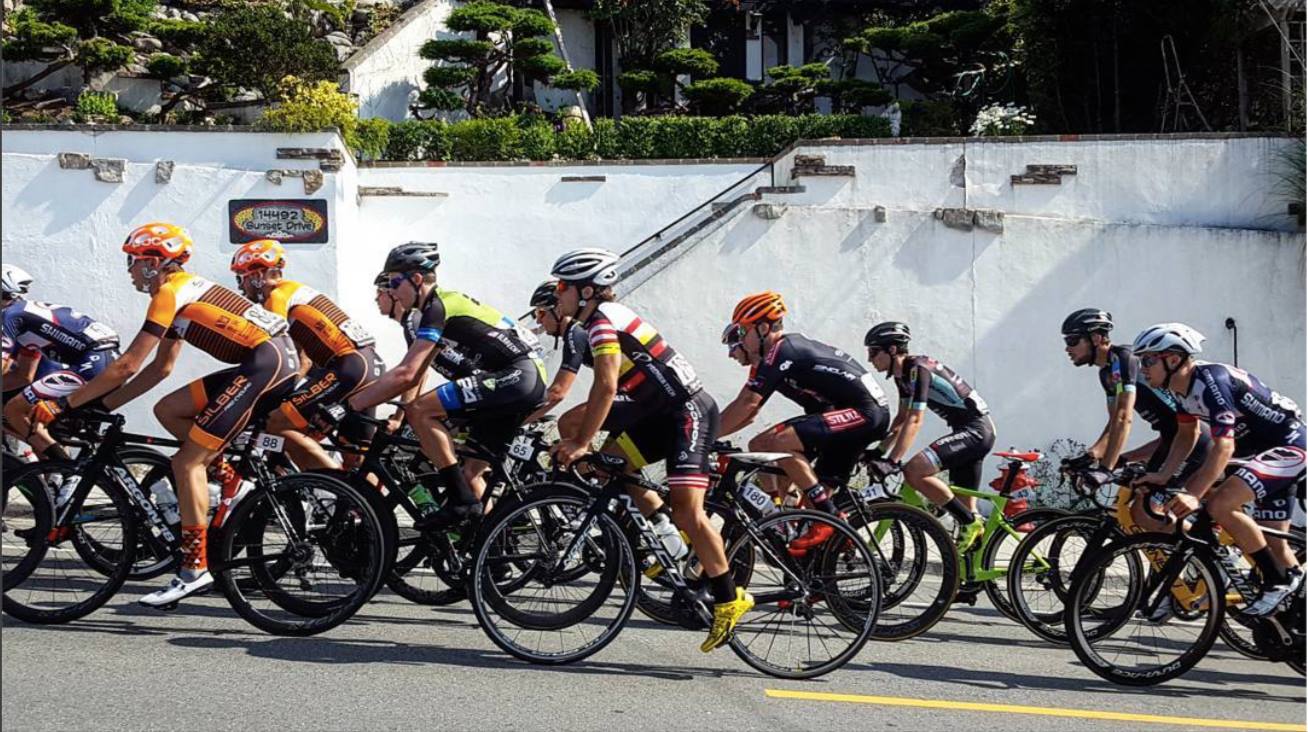 Dimanche matin, 7h30, de retour au bord du Pacifique, le calme total. L’équipe se prépare en vue de tout donner pour David Drouin. Nous savions que ce type de parcours lui conviendrait avec deux ascensions avec des pourcentages élevés. 130 kilomètres de course sur un parcours en ville.