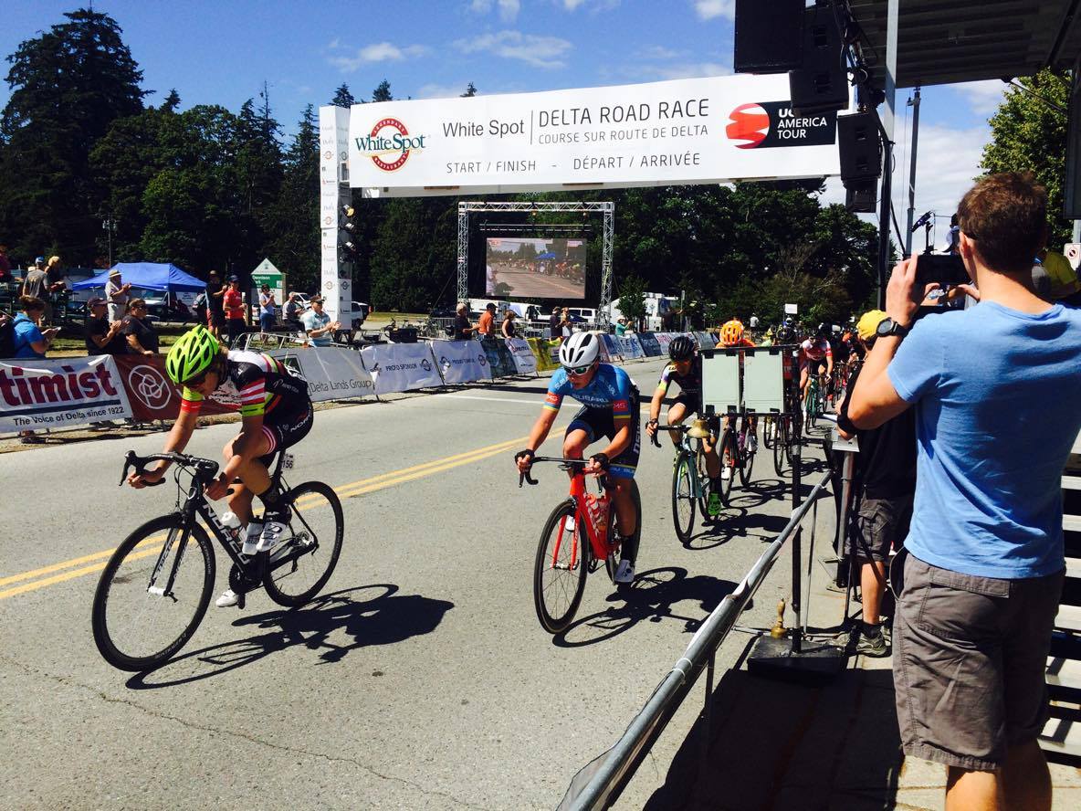 C’est avec une température impeccable que Norco/Premier Tech p/b Chewpod a pris le départ de White Spot, dans la ville de Tsawwassen. Il s’agissait d’une course de 13 tours, pour un grand total de 155 km, sur un circuit aux allures de montagnes russes, avec pas moins de 18 virages.