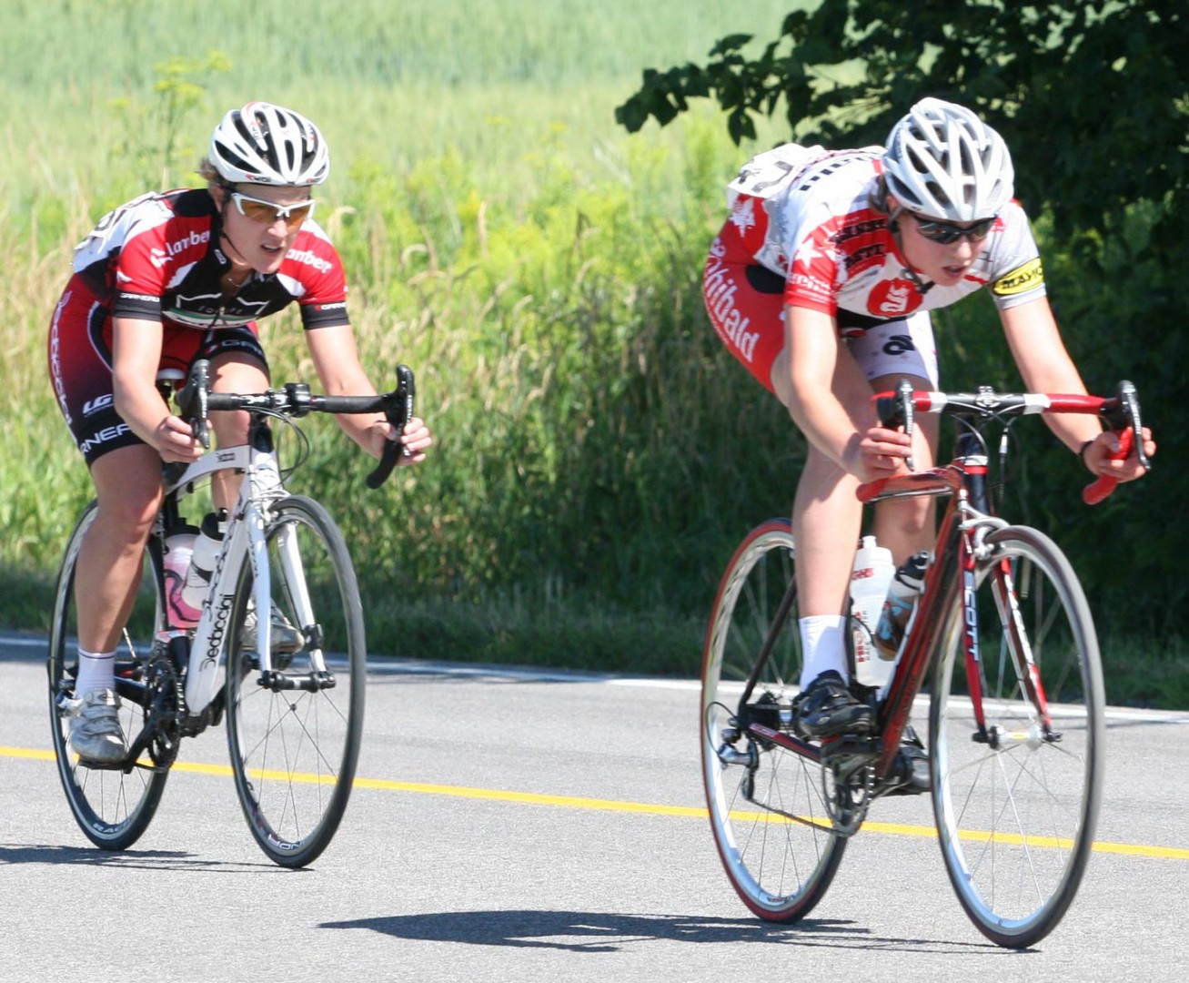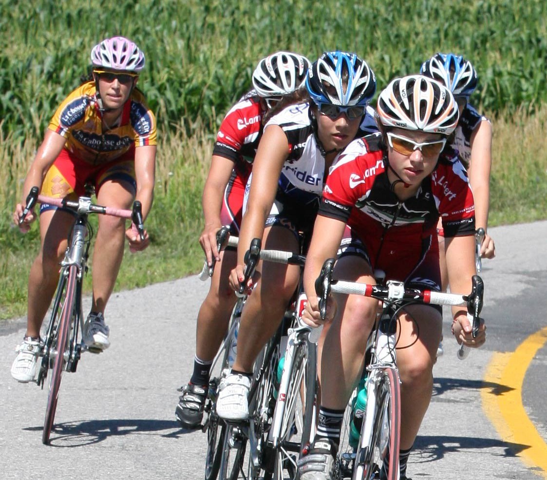 Chez les filles, le vainqueur de la veille, Myriam Gaudreault, a réalisé le même numéro qu’au critérium en l’emportant en solitaire. Isabelle Rodrigue, aidée de ses coéquipières Annabelle Dumais et Gabrielle Pilote-Fortin, a su ravir le 5e rang de la course sur route et du classement général. Pour sa part, Annabelle a littéralement été fauchée, en raison d’une erreur d’une autre coureuse qui a fait fausse route. En battante, elle s’est relevée et a terminé l’épreuve malgré un ennui mécanique dû à cette chute. Gabrielle Pilote-Fortin fut pour sa part classée 15e de cette course « open », ainsi première junior à franchir la ligne.