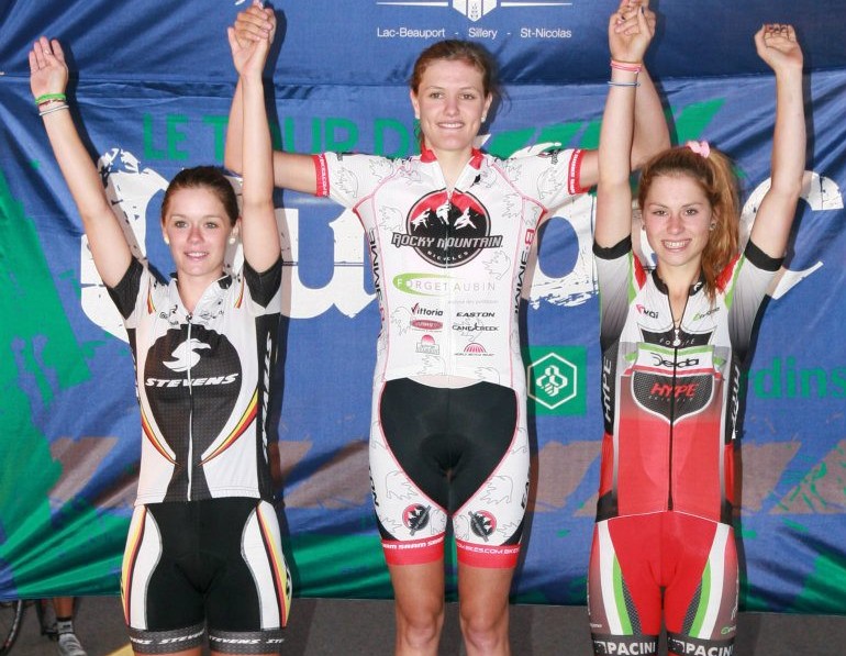 Juste avant la course des gars, les filles ont offert une superbe performance collective, permettant à Gabrielle Pilote-Fortin de s’emparer au sprint de la deuxième position. Le travail d’équipe a été récompensé suite aux nombreuses attaques d’Isabelle Rodrigue notamment et du travail au devant du peloton pour ramener les échappées où les Deda n’étaient pas représentées. Soulignons ainsi la magnifique collaboration de Stéphanie Germain, Hélène Pilote-Fortin et d’Annabelle Dumais.