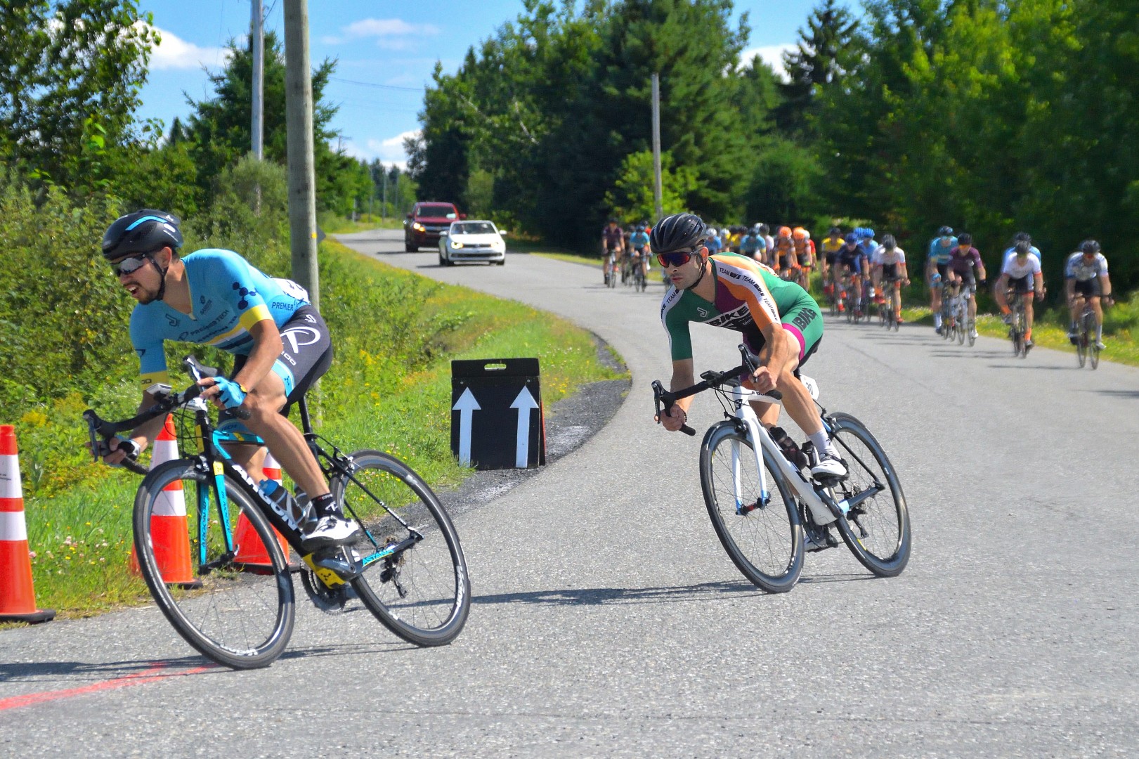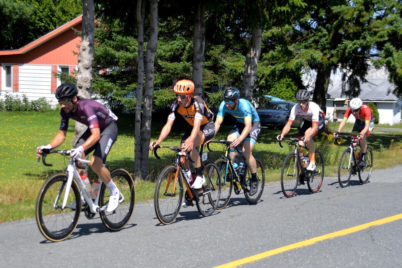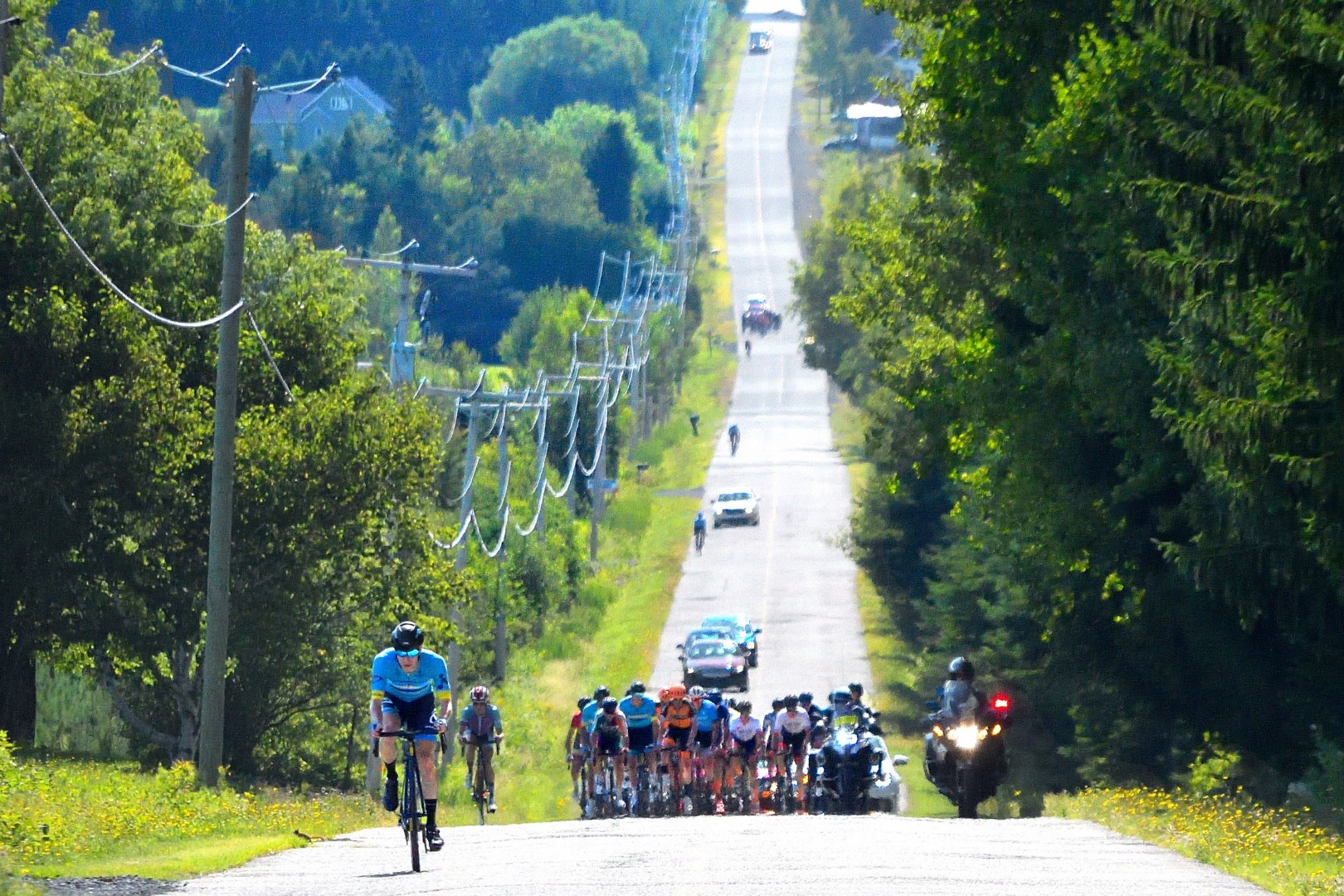 Le groupe d’échappés maintenant réduit à 5 cyclistes ne sera malheureusement jamais revu et ce malgré la belle chasse menée par la formation Premier Tech p/b Argon 18 et les quelques autres formations non représentées. Le groupe était parvenu à réduire l’écart de beaucoup mais de nouvelles attaques lancées par des coureurs impatients sont venues semer la discorde dans le peloton.