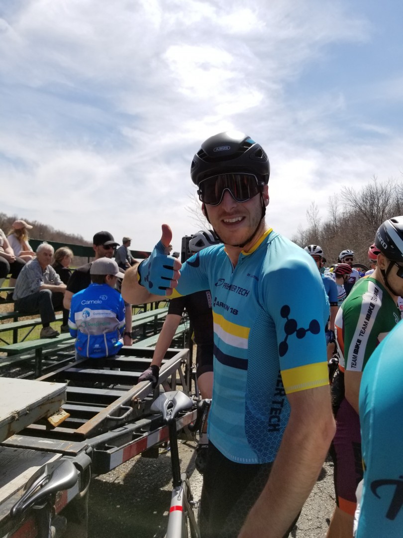 Dimanche, l’équipe s’alignait au départ du Grand Prix cycliste de Contrecœur. Au programme: 8 tours d’un circuit plat pour un total de 107km.