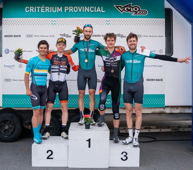Ce samedi avait lieu le critérium provincial de Longueuil. La course s’est annoncée animée dès les premiers tours avec une échappée de 5 coureurs. L’unique représentant de l’équipe dans ce petit groupe sélect était nul autre que Maximilien Moreau. L’écart entre le peloton et l’échappée n’a tenu qu’a quelques secondes tout au long des 75 minutes de course. Les 5 fuyards ont finalement résisté aux nombreuses et très rapides attaques du peloton qui n’ont laissé aucun coureur sur leur appétit. Un peu moins de la moitié des coureurs ont été en mesure de compléter l’épreuve. Au terme de l’épreuve, Maximilien fait briller les couleurs de l’équipe avec une 4e position, à un cheveu du podium…!