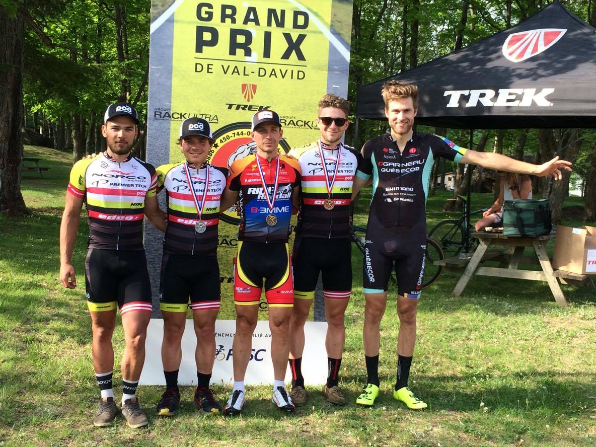 In the last climb of the race, David was distanced by Derrick, who went for the win. Jean-Simon attacked to get the third position, while Simon Ouellet earned 4th place in the sprint.